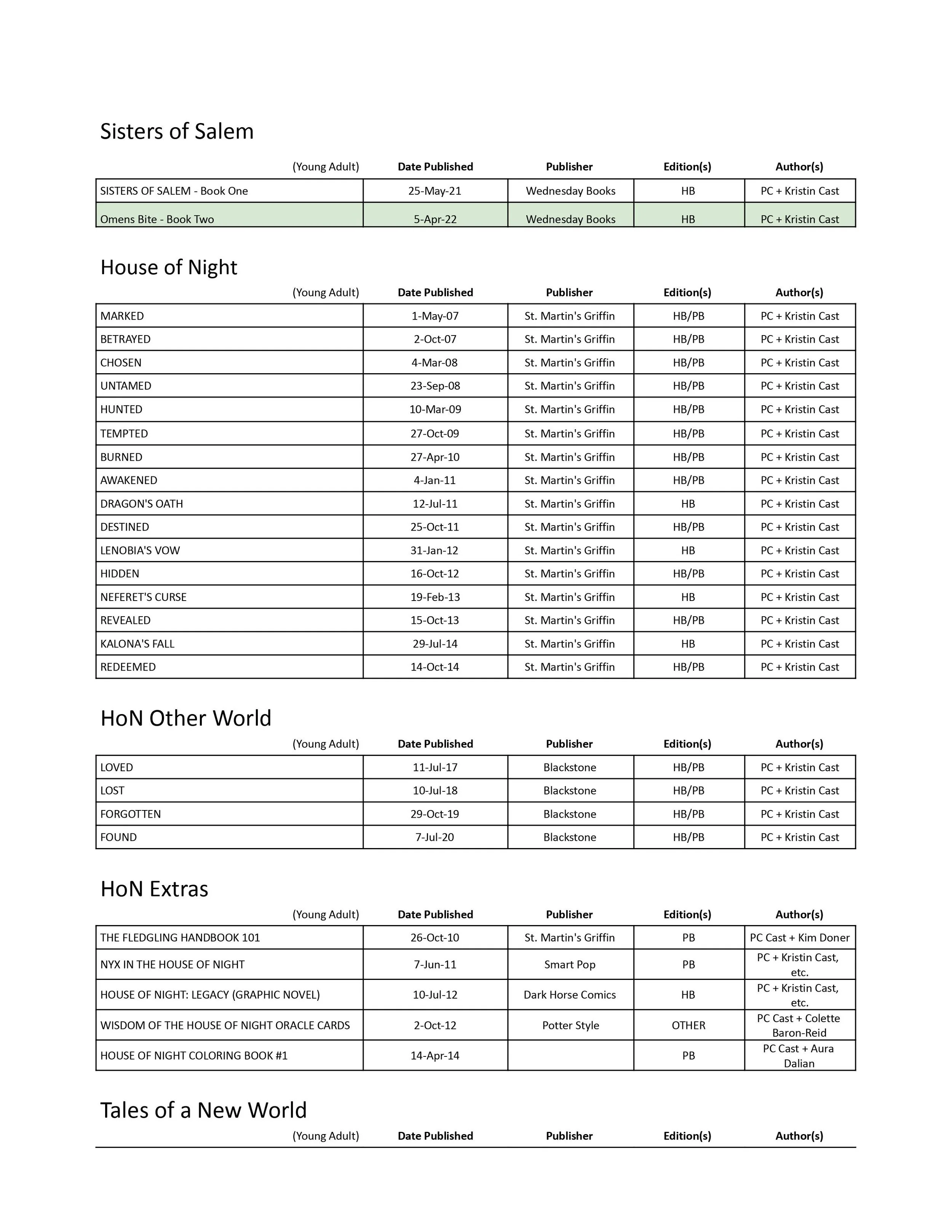 Special Order - arrival estimates will be. PC is a member of the Oklahoma Writers Hall of Fame. Cast and Kristin Cast is a young adult vampire series set in modern-day Texas.